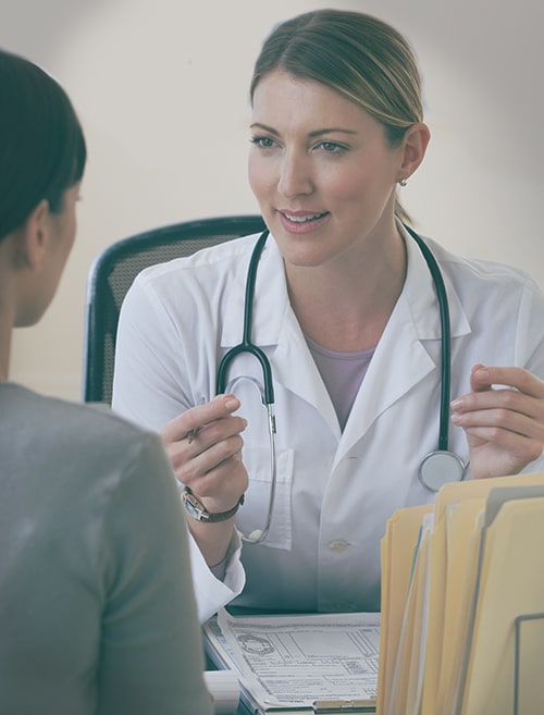 Женщина-врач разговаривает с пациенткой